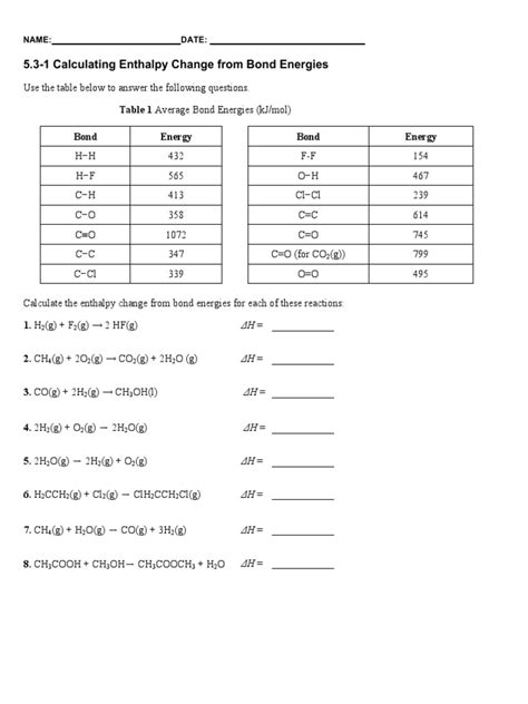 Quiz & Worksheet Calculating Bond Enthalpy from study.com