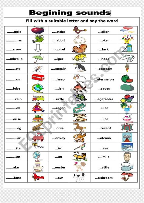 Esl Beginning Worksheet. Web live worksheets > english > english as a second language (esl) > phonics > beginning sounds. Free interactive exercises to practice online or download as pdf to print.