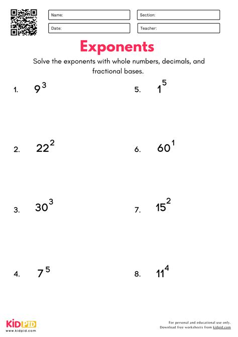 Grade 6 Exponents Worksheet Keywords: